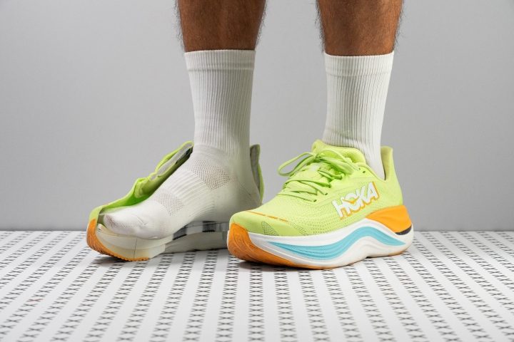 ジオメトリーはMizuno Wave Rebellion Pro 1を思わせるアグレッシブさ。リアのヒールベベルが強く、フォームが中足部に集中し、フォアロッカーが早めに始まります。ライドは超高速で、Puma Fast-R Nitro Elite 3に次ぐ推進力。フォームのバウンスとジオメトリーの組み合わせがスピードを生みます。