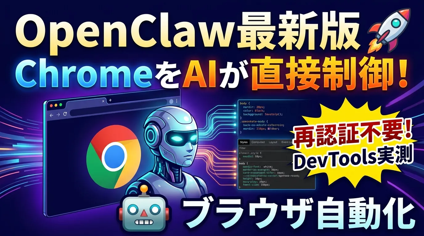 OpenClaw最新版:ChromeをAIが直接制御!再認証不要のブラウザ自動化 DevTools 実測 🤖🚀